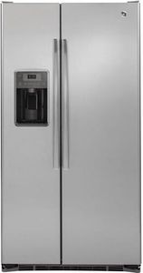 GE® 21.9 Cu. Ft. Counter Depth Side By Side Refrigerator-Stainless Steel with LED lighting, glass shelves and clear door bins.Read More